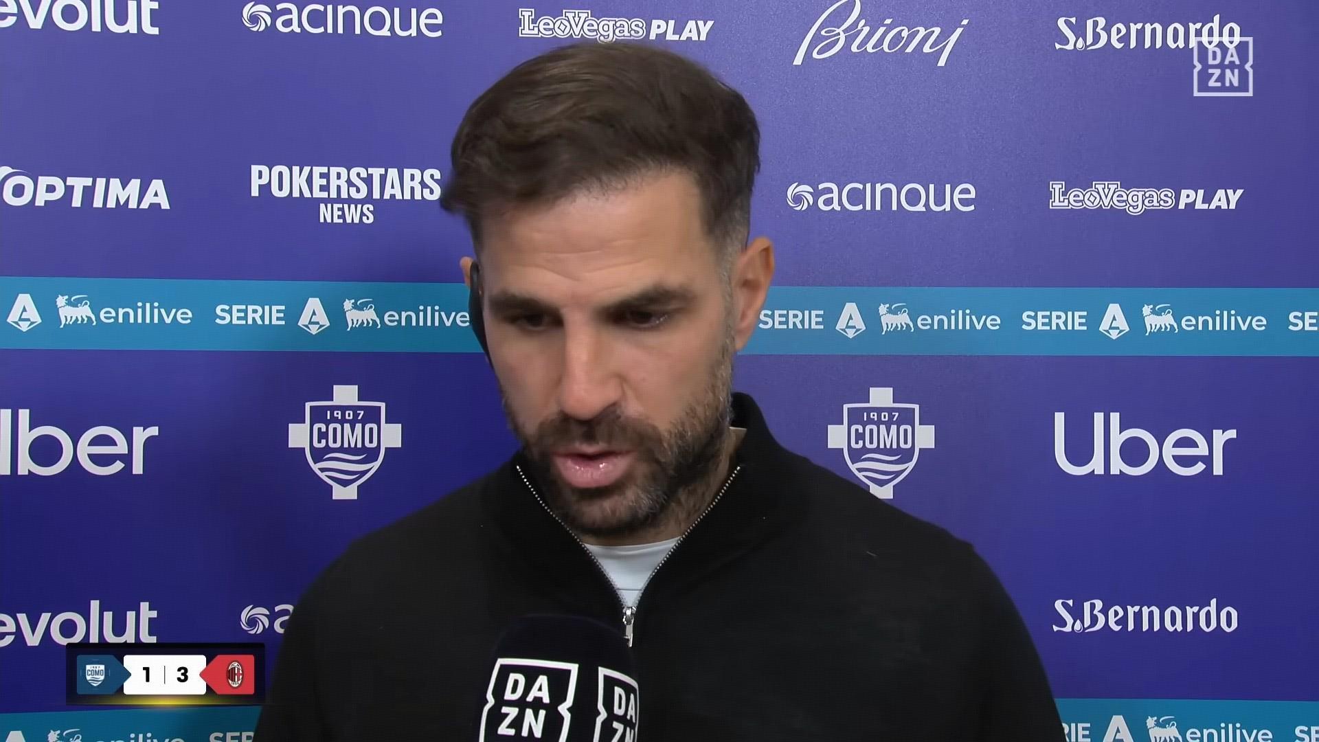 米兰在意甲第16轮补赛客场3-1击败科莫,科莫主教练法布雷加斯在赛后接受了DAZN的采访。